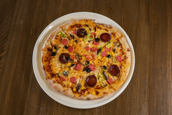Siyah zeytin, Sosis, Sucuk, Mantar, Mısır, Biber